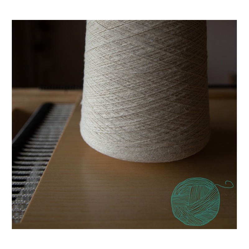 Przędza tkacka, zmieszana w 50% z wełny merino oraz 50% jedwabiu morwowego.
